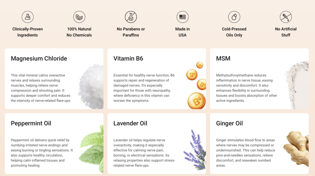 TheraWolf Neuro Balm contains natural compounds known to support joint function by helping maintain balanced inflammatory responses and promoting comfortable movement. These ingredients help reduce internal stress that can affect the joints, which is often linked to stiffness, soreness, and limited range of motion. The formula also includes essential nutrients that are important for maintaining connective tissue strength, cartilage support, and overall musculoskeletal health. The blend of natural compounds and nutrients in TheraWolf Neuro Balm has been clinically studied for its role in supporting joint health.